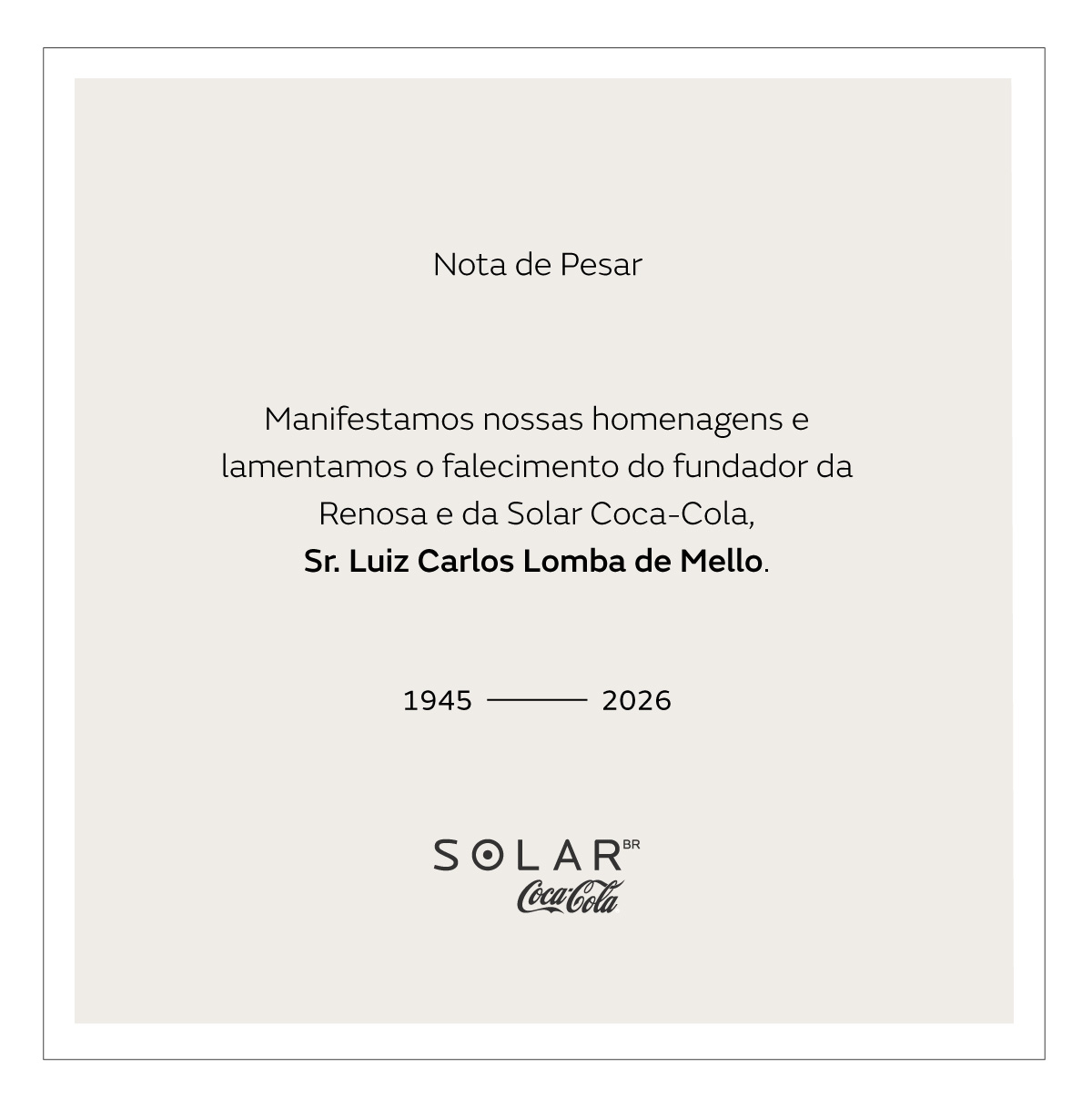 Nota de Pesar - Sr. Luiz Carlos Lomba de Mello